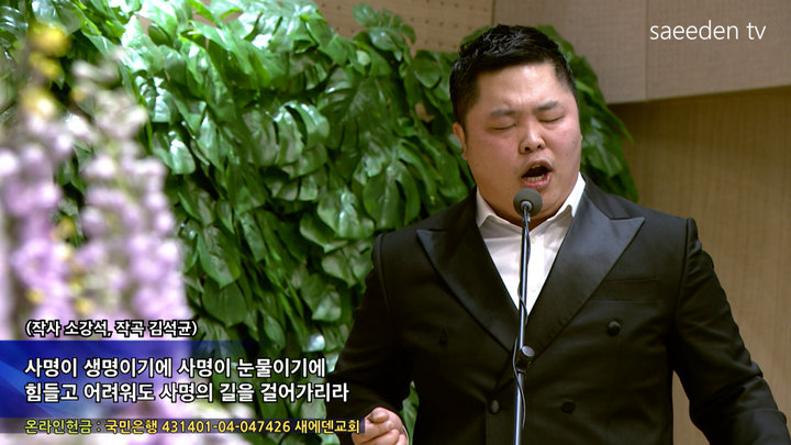 | 958 | 사명의 길 <작사 소강석, 작곡 김석균> | 테너 이다윗 | 2026-03-01 |