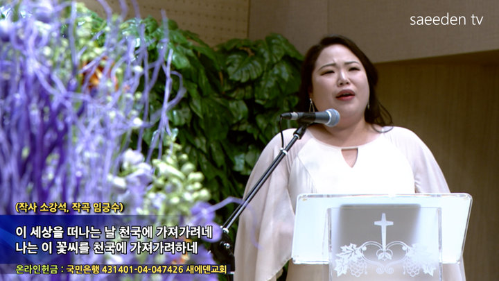 | 909 | 꽃씨(작사 소강석, 작곡 임긍수) | 소프라노 김도아 | 2025-03-30 |